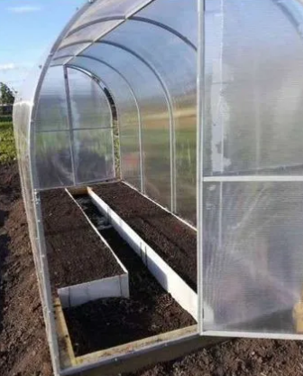 Огуречник - один из самых компактных, но при этом полноценных каркасов (не парник). Изготовлен из квадратной трубы сечением 20*20, шириной 1,56, длиной 4м, высотой 1,85м. Двери расположение с двух сторон в шахматном порядке.